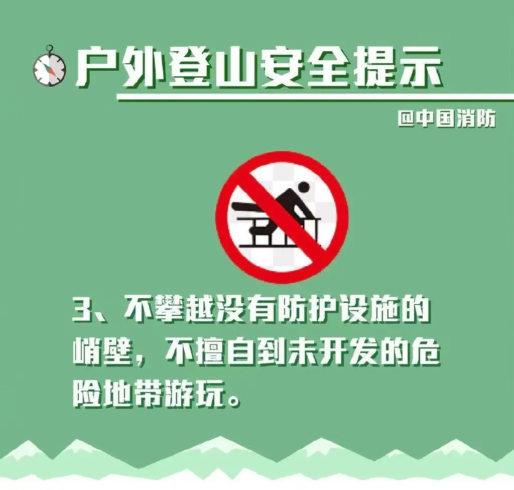 若有外出游玩计划,请牢记,在和大自然亲密接触时,一定要绷紧安全“弦”,切勿将自己陷入进退两难的境地,如遇危险,及时报警求助,以下注意事项请知晓。