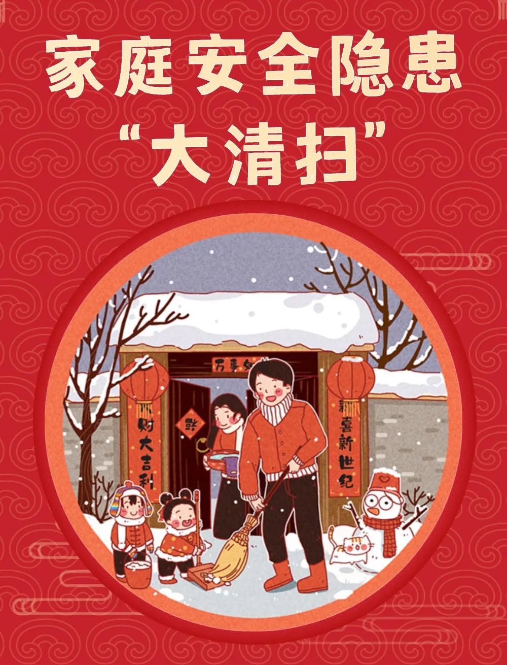 今天是农历腊月二十三,也是北方传统的“小年”,明天是农历腊月二十四也是南方传统的“小年”。“小年,小年,过了今天就是年”,这一天家家户户扫房擦窗,清洗衣物,刷洗锅瓢,实施干净彻底的卫生大扫除。因“尘”与“陈”谐音故扫尘也就是把陈旧的东西一扫而光,既指庭院内的陈年积垢,也指旧岁中遇到的不快。借着小年的契机,正好可以对家里的安全隐患,进行一次大消除。