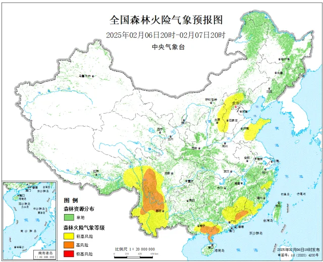 春季森林火灾易发,2月6日,应急管理部森林防火预警监测信息中心发布最新高森林草原火险天气警报,预计,今天晚上到明天白天,广东东北部和西南部、广西东南部、四川西南部、云南北部的局部地区森林火险等级为高度危险。