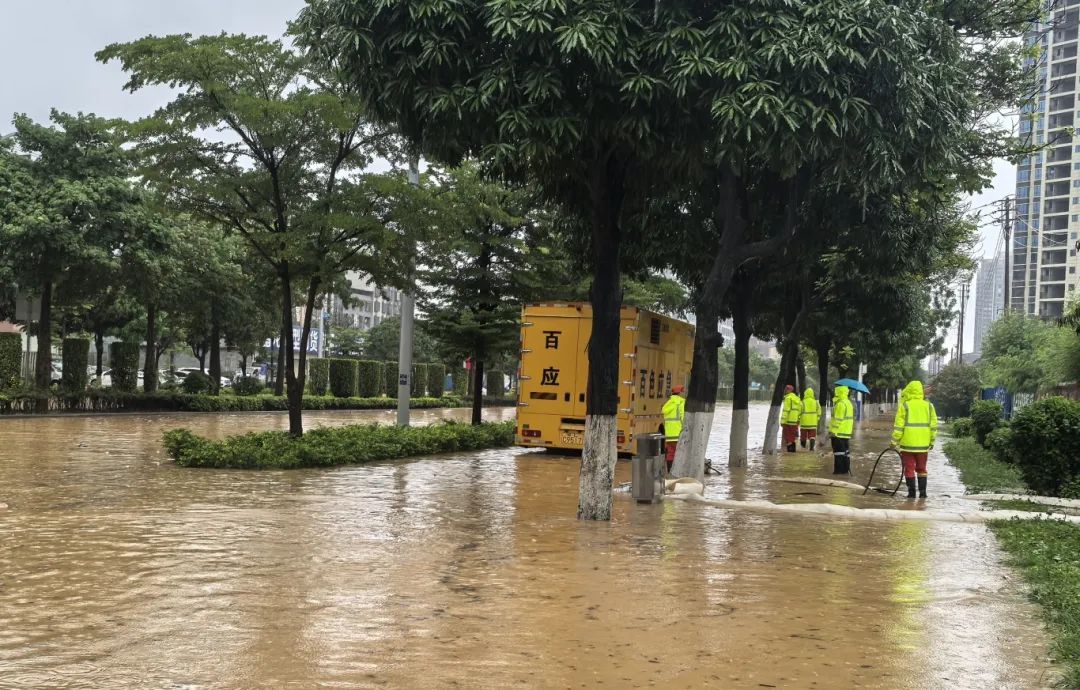 6月21日上午8时许,百色市综合性森林消防应急救援支队出动新型排涝车开展抢险排涝作业,共出动20余人,发动4台水泵抽排水,总排水量约4000余立方米。经过4个小时连续奋战,部分道路内涝段已恢复通车。