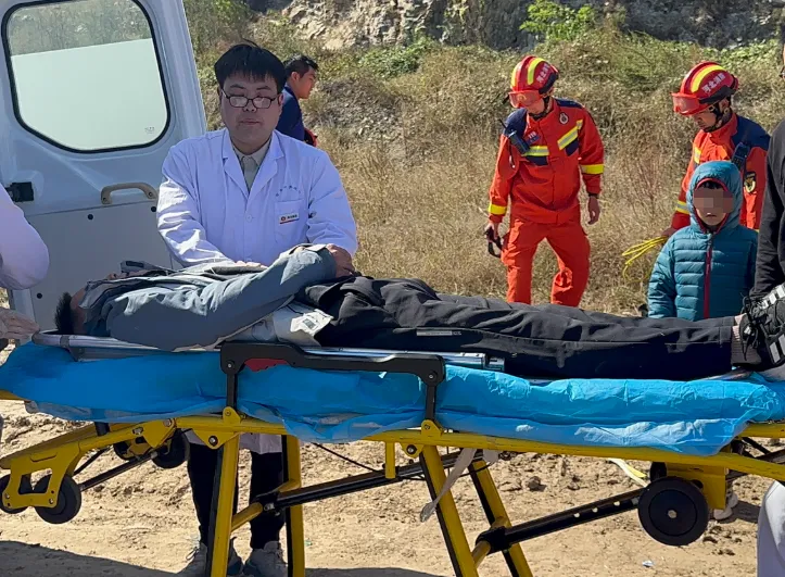 经过紧张营救,男子得以安全下山,并被移交给120送医治疗,他的4名家人也被顺利转移至安全地带。