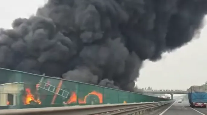 ●2025年9月26日,京哈高速河北秦皇岛段一辆油罐车与半挂货车发生碰撞,导致罐体破裂发生泄漏,现场多处燃起大火。