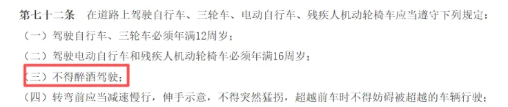 开车不喝酒,喝酒不开车,这个车也包含非机动车,醉酒后骑自行车、电动车,一旦发生意外,甚至会危及生命。
