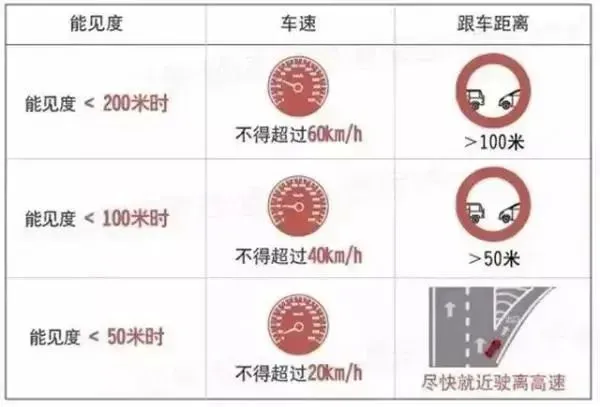 雾天能见度低,最重要的就是“降低车速、加大车距”,在高速公路上,尤其要严格遵守车速、车距规定。