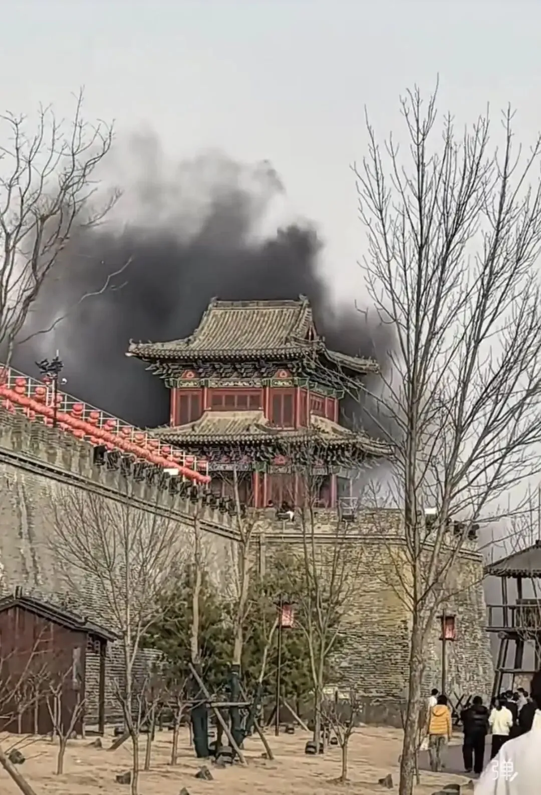 2026年2月21日下午,河北邯郸广府古城景区一座角楼突然着火。工作人员表示,火灾系游客丢弃的烟头引起。当时风较大,烟头引燃了附近存放灯笼的纸箱。景区工作人员发现后,在5分钟内就把明火扑灭了。
