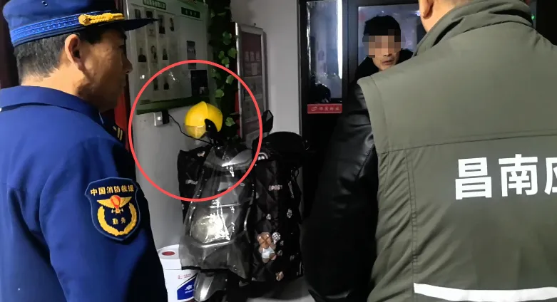 近日,江西省南昌县消防救援大队联合南昌县应急管理局开展夜间突击检查,在某小区检查发现一名物业工作人员将电动自行车推入办公室内充电,存在重大火灾风险。