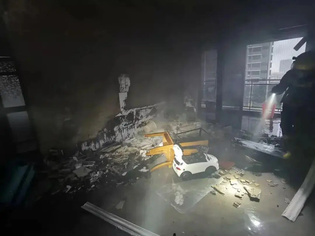 广东阳江,某小区住户突发火灾,事发时家中一辆电动玩具车正在充电,由于充电时间过长引起火灾。