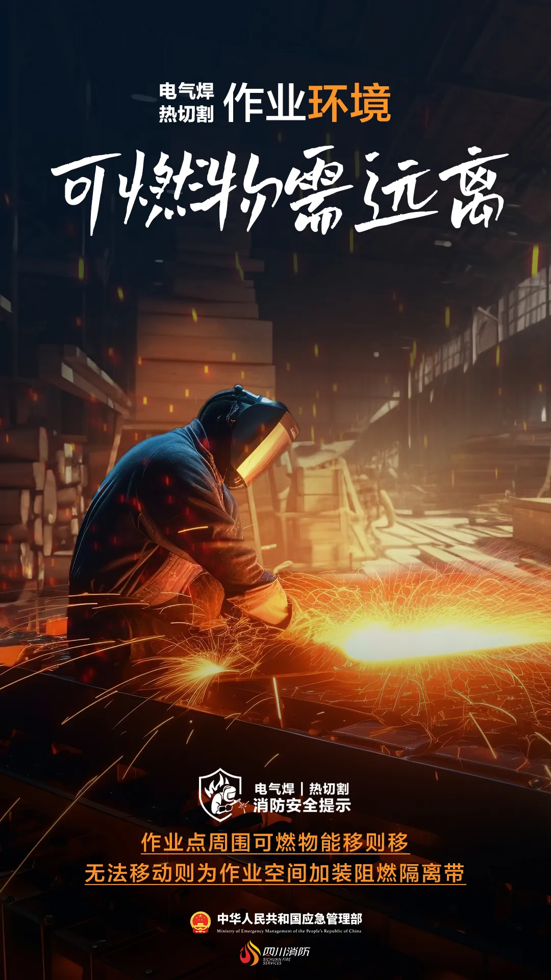 4.要有不燃物品覆盖遮挡,确保周边无法移动的可燃物不被引燃。