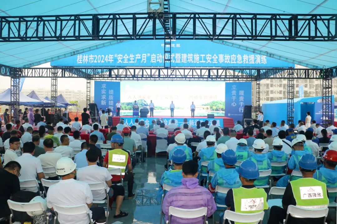 为切实增强建筑工程领域的安全生产意识,提高应对突发事件的应急救援能力,6月14日,桂林市紧扣第23个全国“安全生产月”活动主题,在桂林学院二期建设项目施工现场举行 2024 年度“安全生产月”启动仪式暨建筑施工安全事故应急救援演练活动。桂林市副市长、桂林市公安局局长莫一格出席启动仪式,宣布活动启动。