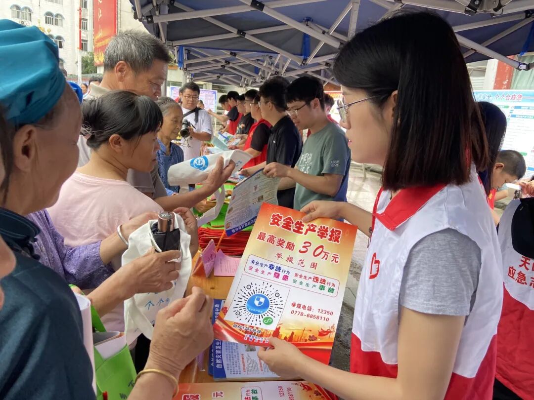 6月14日,河池市天峨县应急管理局联合多个安委会成员单位在人民会堂广场开展“人人讲安全、个个会应急——畅通生命通道”主题集中宣传活动。