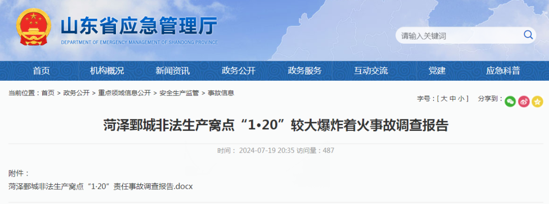 日前,山东省应急管理厅发布了《菏泽鄄城非法生产窝点“1·20”较大爆炸着火事故调查报告》,公布了上述事故详情。