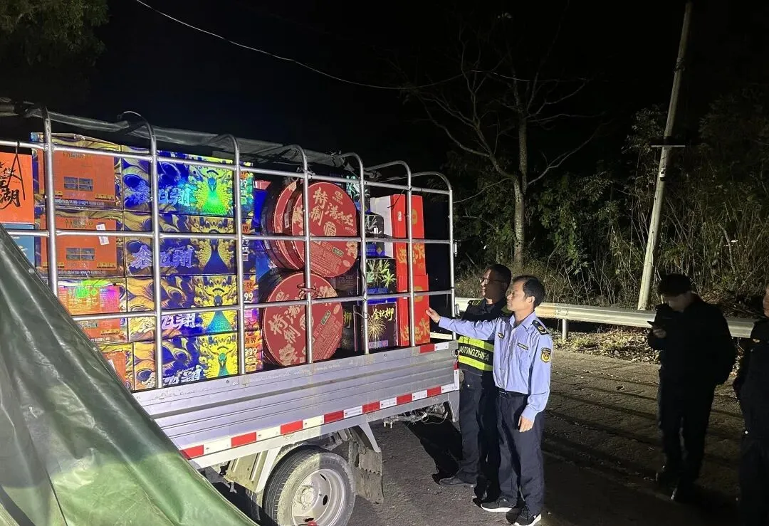 2月3日深夜,防城港市东兴市应急管理局联合东兴市公安局治安管理大队、东兴市交通运输局及江平边境派出所在东兴市江平镇黄竹村边境管理大队高英临时执勤点查获涉嫌非法运输烟花爆竹小型货运车1辆,车内载满烟花爆竹。初步核查得知,涉案人员从东兴市辖区外购入货物后,未经许可擅自组织运输,企图在当地进行非法销售。目前,涉案非法运输人员、车辆及烟花爆竹已由江平边境派出所依法依规进行调查处置,案件正在进一步侦办中。