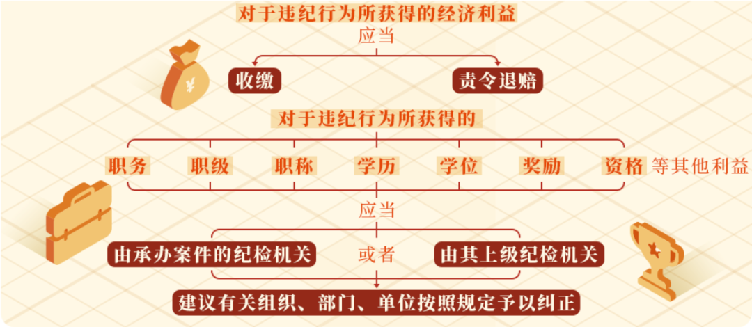 对于违纪行为所获得的职务、职级、职称、学历、学位、奖励、资格等其他利益,应当由承办案件的纪检机关或者由其上级纪检机关建议有关组织、部门、单位按照规定予以纠正。