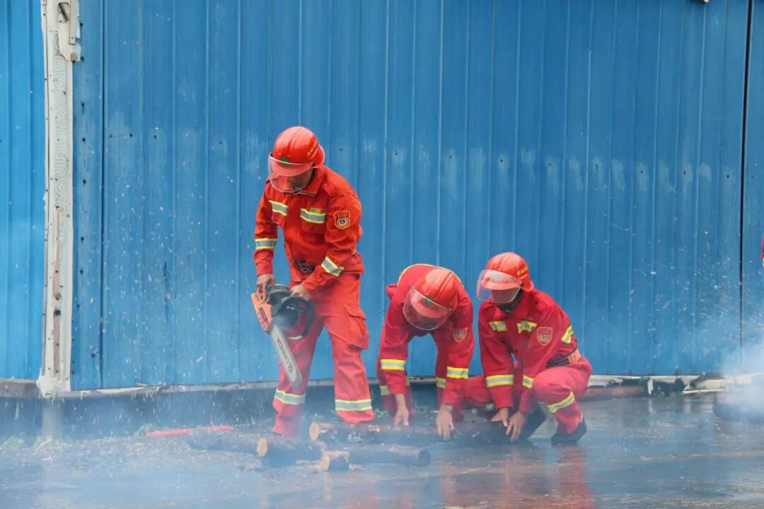 随着演练指挥长一声令下,演练正式拉开序幕,演练分为技能展示和以水灭火演练两大环节。在技能展示环节,贵港市森林消防支队展示队列动作;桂平市森林消防队展示风力灭火机拆装技能;港北区综合应急救援队、港南区应急救援大队展示着防护装负重越野技能;覃塘区应急森林消防队展示油锯伐木技能。