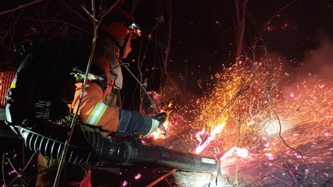 队伍采取“多点突破、分割围歼”战术,配合运用车载重型水泵、风力灭火机、高压细水雾、灭火弹等装备强力压制火头、追击火线、清理余火。最终,在火场各方力量全面协同配合、合力攻坚克难下,山火被彻底扑灭。