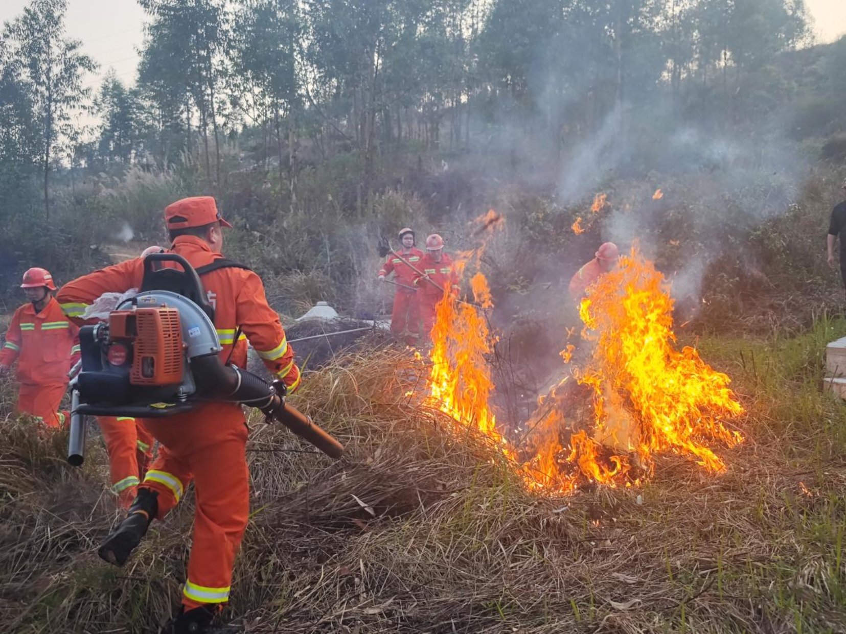 培训最后阶段是林地灭火实战演练。演练模拟不同火势蔓延场景,参训人员在专业指挥下,协同完成火线突破、火场清理等任务,重点演练了复杂地形下的避险与快速反应能力。通过高强度、多场景的模拟训练,队伍的实战协同性和临场处置能力得到显著提升。