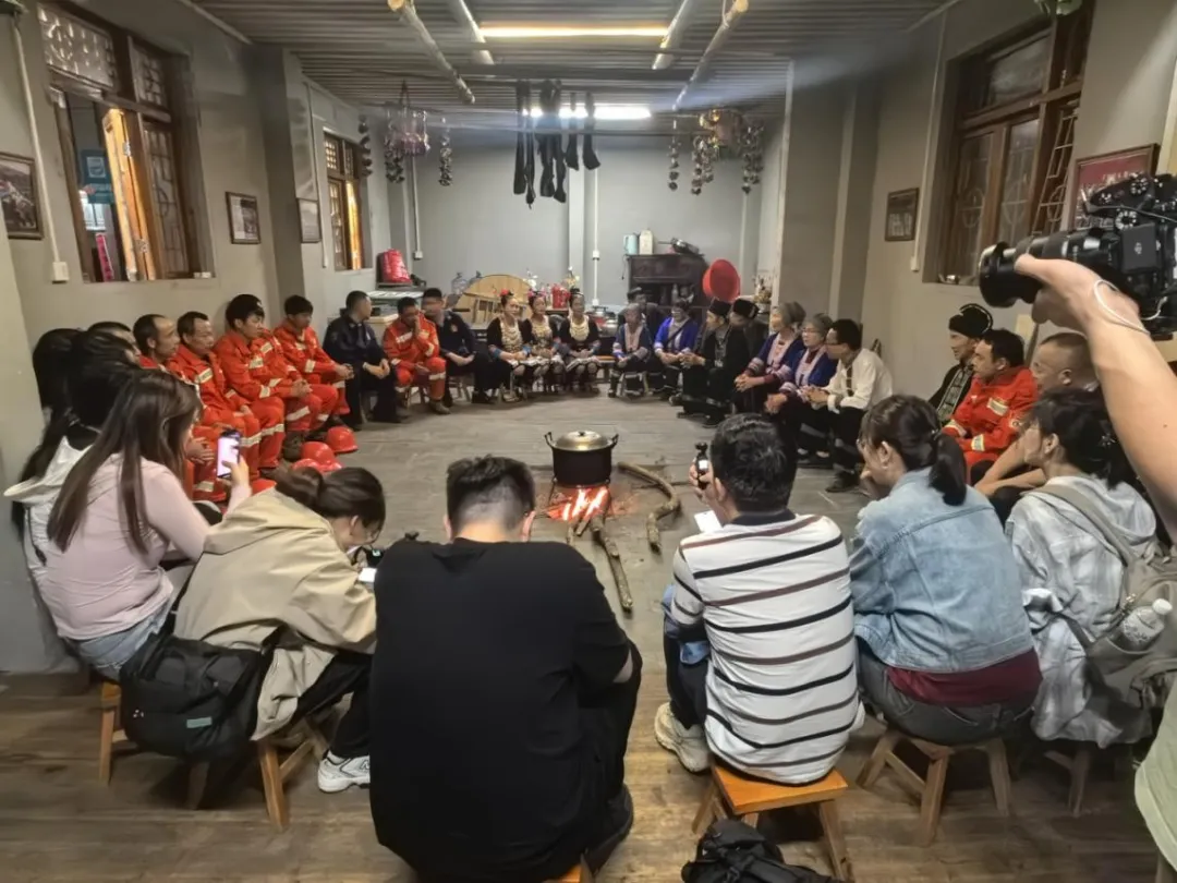 采访广西壮族自治区桂林市龙胜各族自治县广南村夜间“火塘访谈”乡村森林防灭火做法