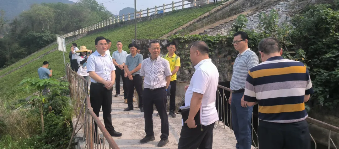 检查组一行在百色市田东县龙须河水库检查防汛备汛工作。