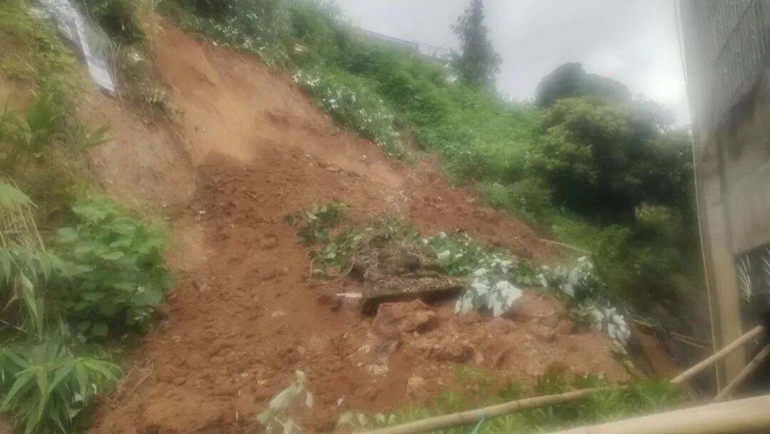 藤县埌南镇冼村山体崩塌地质灾害现场。