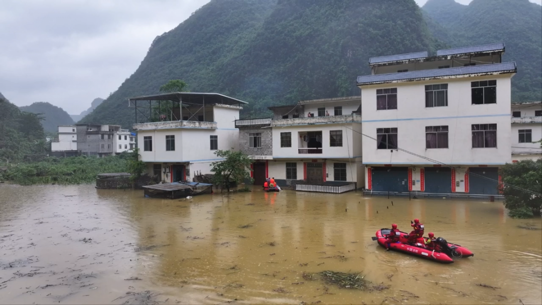 6月19日至20日,河池市巴马瑶族自治县受强降雨影响,多地出现洪涝灾害,其中该县的凤凰乡长和村因地势低洼,出现了较严重内涝。灾情发生后,该县公安、消防、应急救援等部门积极响应,迅速展开了紧张有序的救援。