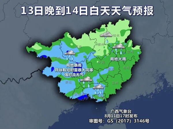 8月11日,广西大部出现了降雨,预计,未来三天广西仍有较强降雨,局地有暴雨到大暴雨并伴有短时雷暴大风等强对流天气。